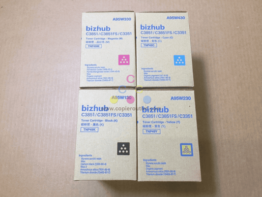 New Genuine Konica Minolta TNP49 CMYK Toner Set for Bizhub C3851 C3851FS C3351