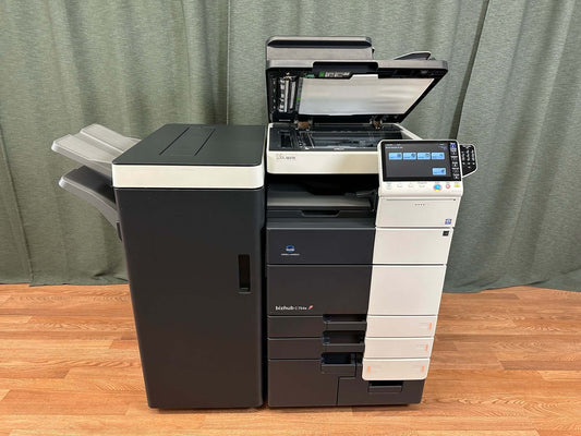 Konica Minolta Biz Hub C754e Color Copier Printer Scanner Finisher Low Use 65K!