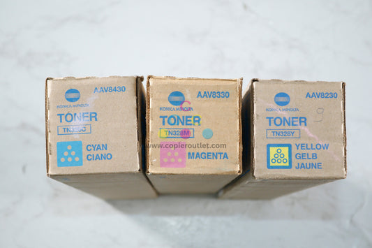 3 New OEM Konica Bizhub C250i,C300i,C360i TN328C,TN328M,TN328Y CMY Toners