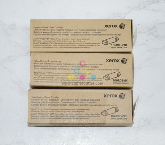 3 OEM Xerox Phaser 6510, 6515 Magenta & Yellow Metered Toners 106R03490, 106R03491