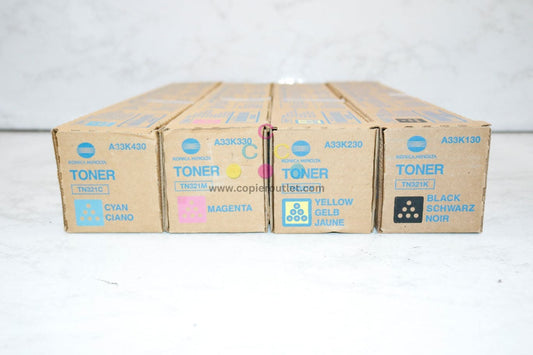 4 New OEM Konica Minolta C224,C224e,C284,C364 TN321 CMYK Toners Same Day Ship