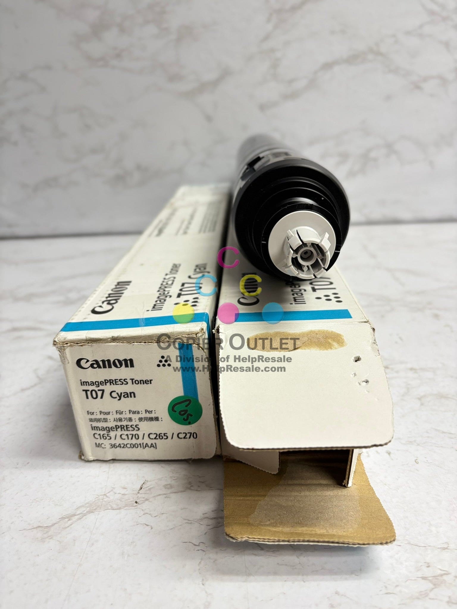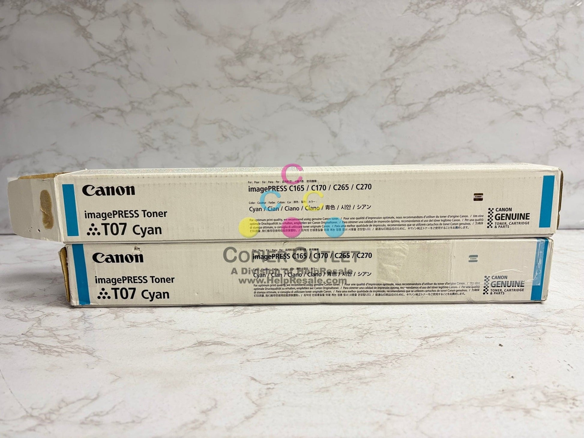 2 Genuine Canon imagePRESS C165,C170,C265,C270 T07 Cyan Toners (1 new & 1 open)