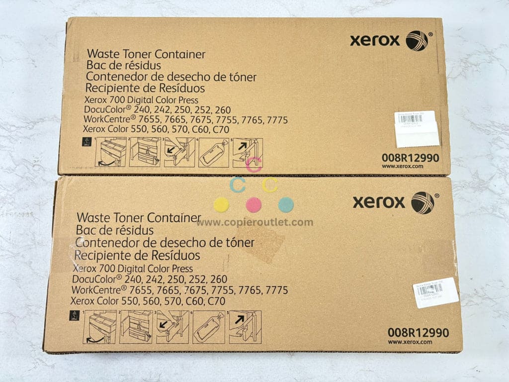 2 OEM Xerox WC7655,7665,7675, C550,560,C60,C70 Waste Toner Containers 008R12990
