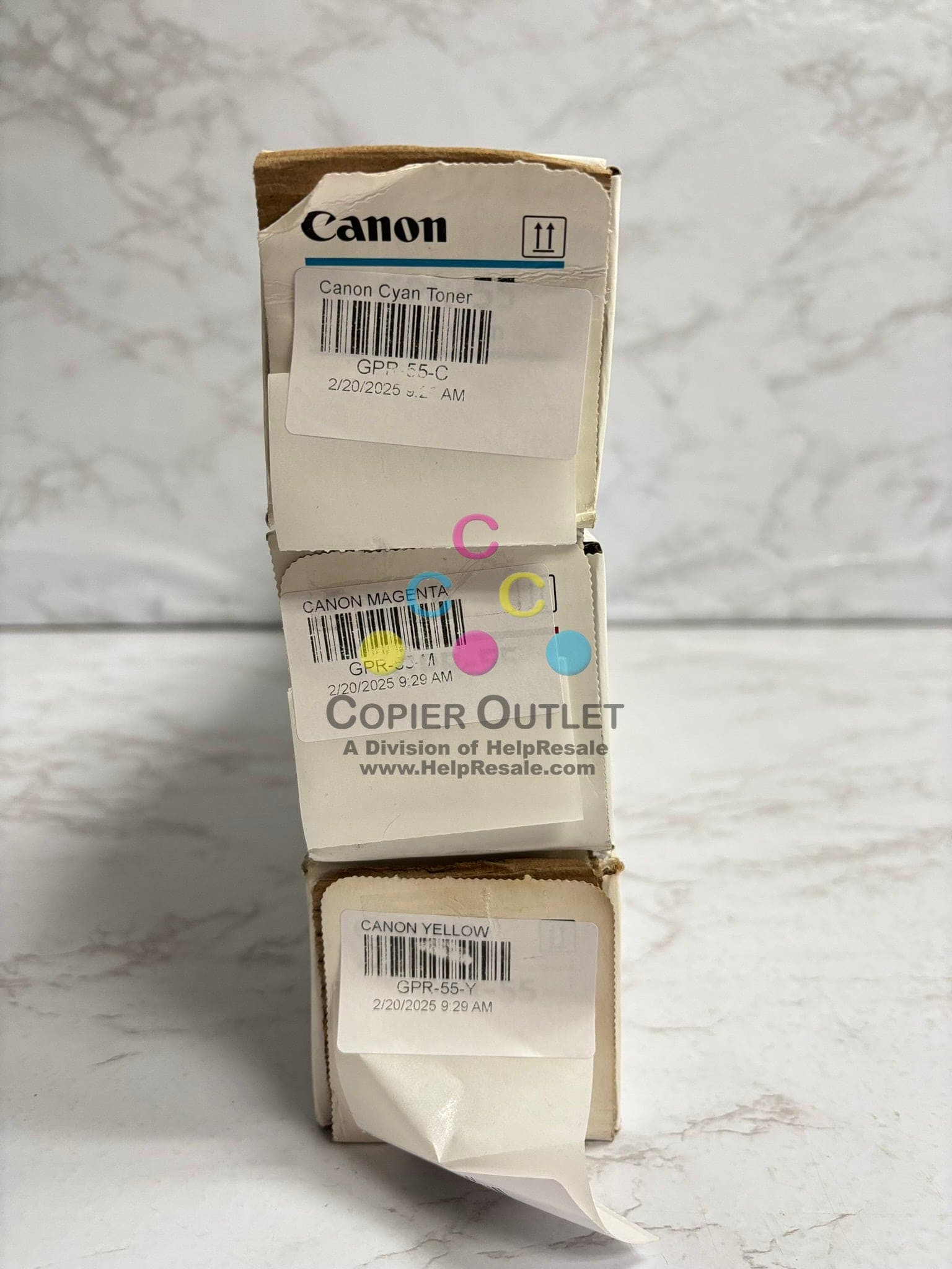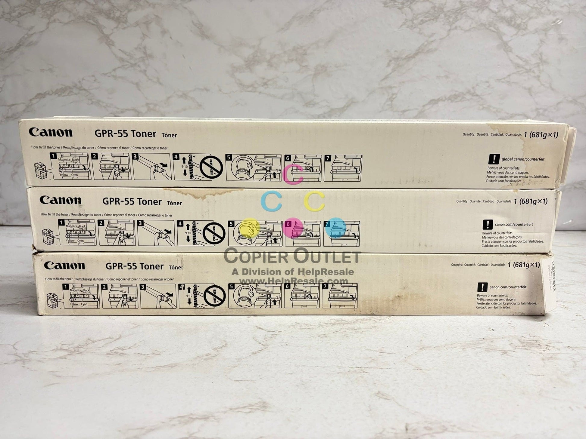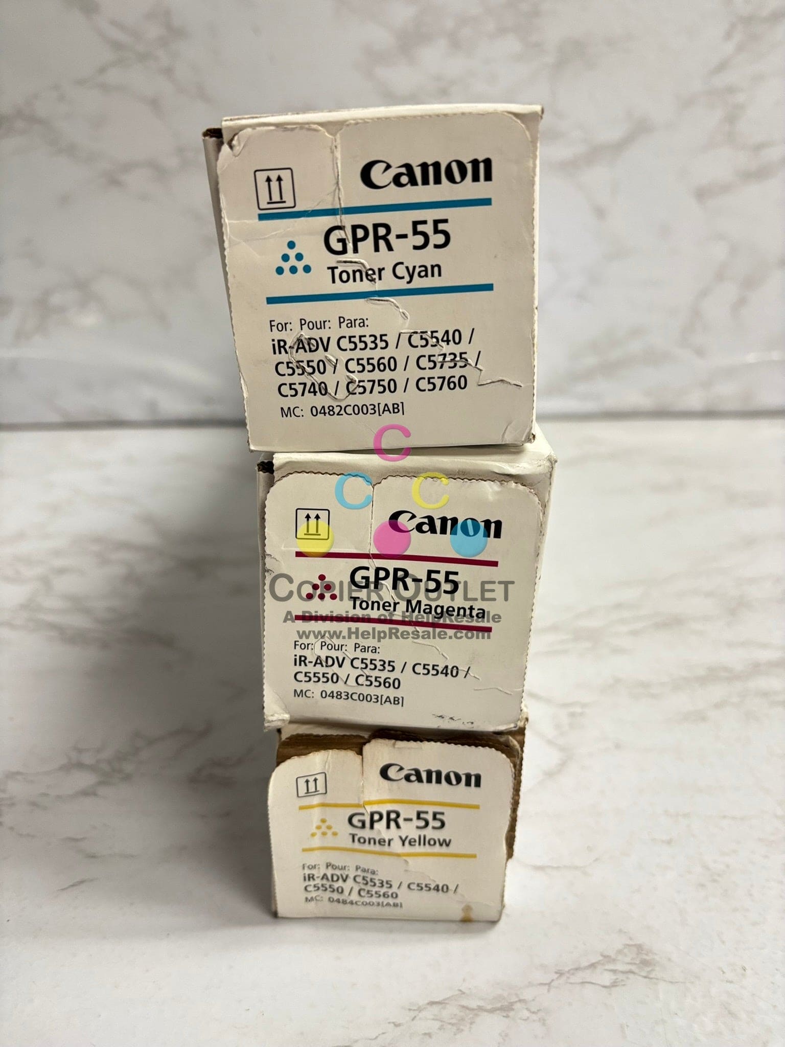 3 OEM Canon iR ADV C5535,C5540,C5550,C5560 GPR-55 CMY Toners (Water Damaged Box)