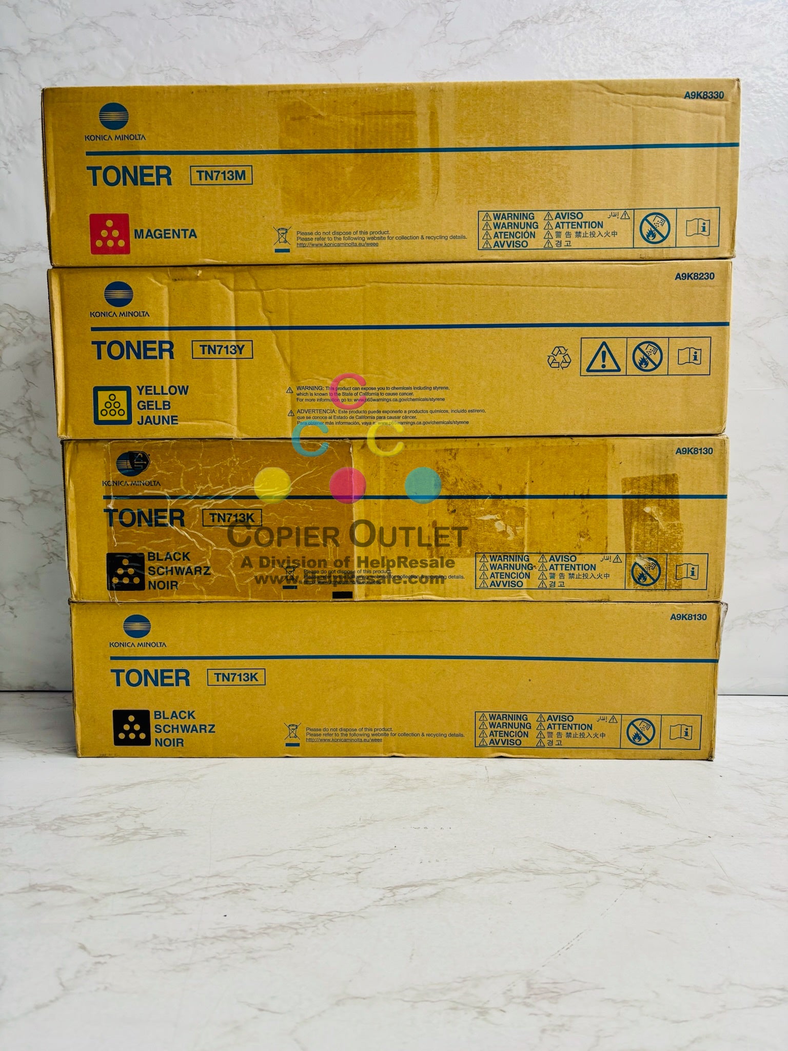 4 Cosmetic Genuine Konica Bizhub C659, C759 MYKK Toners TN713 (No Cyan)