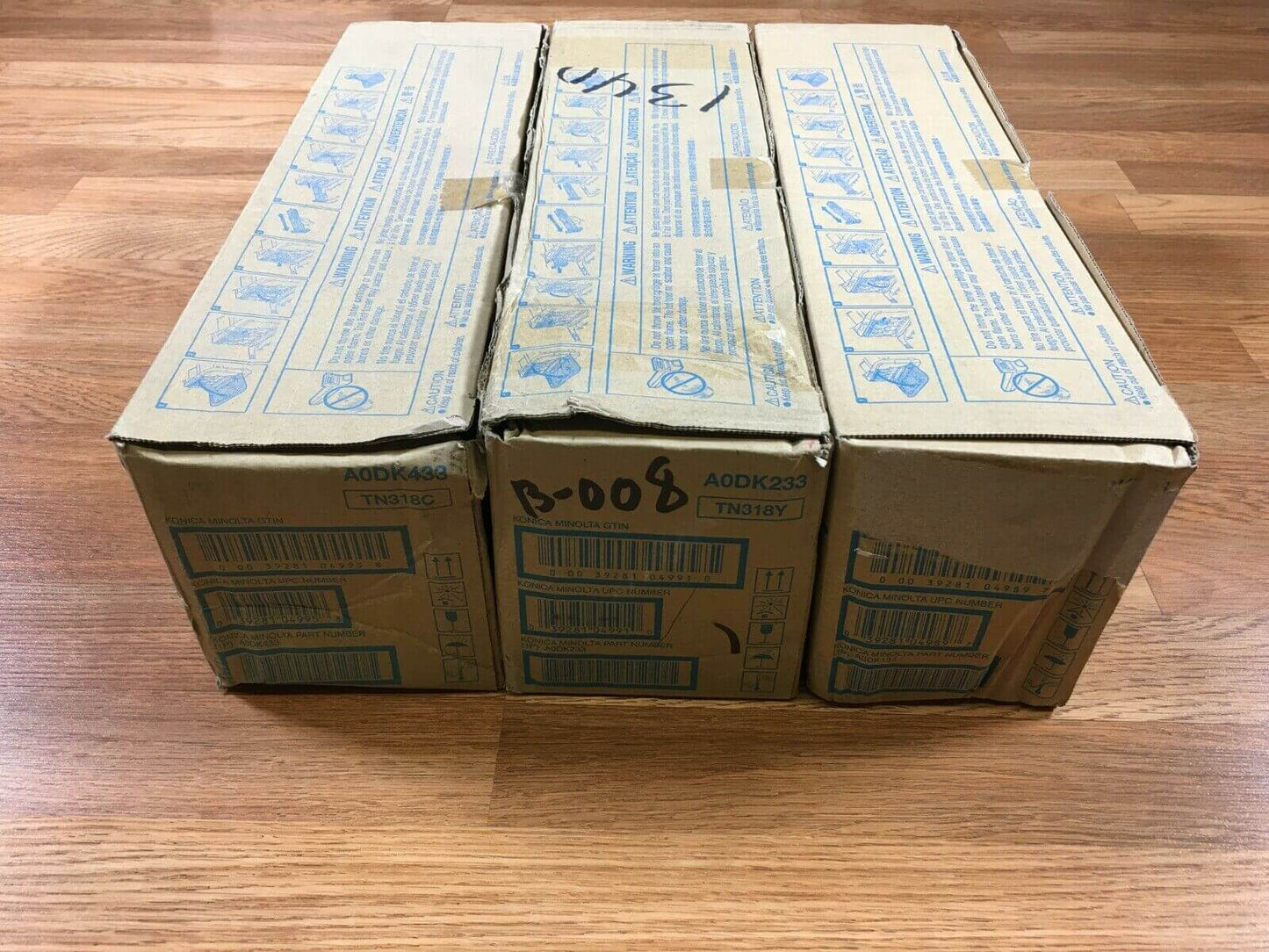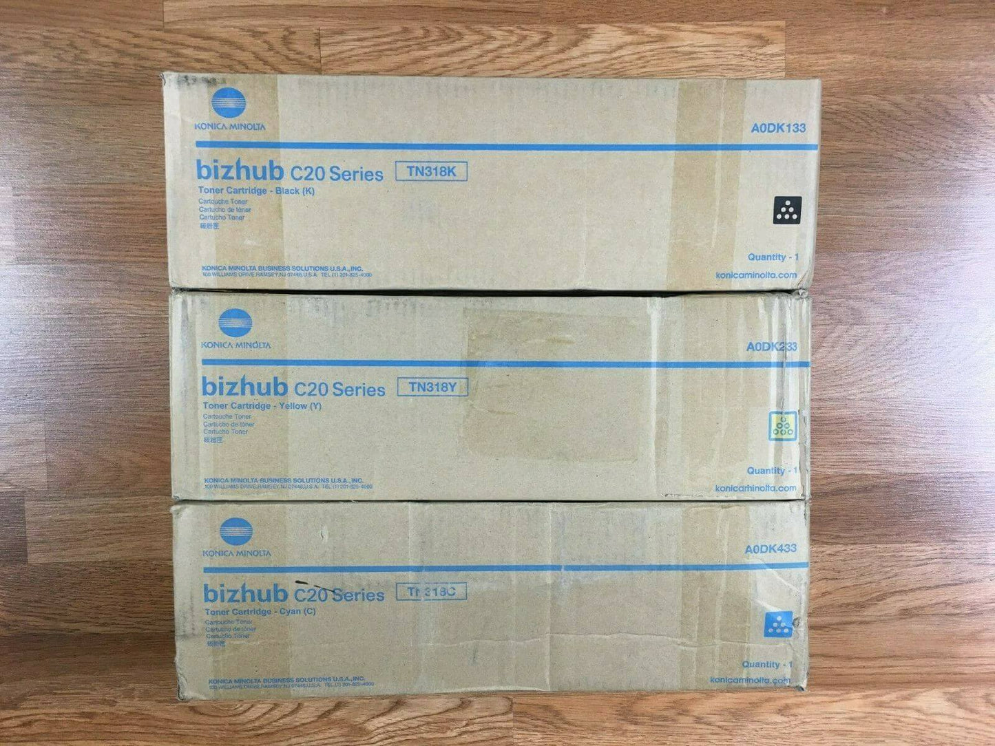 Lot of 3 Genuine Konica Minolta TN318 Cyan Yellow Black C20 Series Toner Cartridges