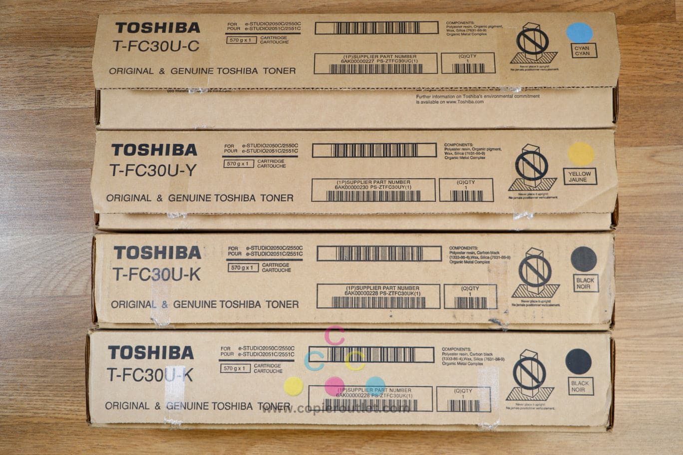No Seal Toshiba T-FC30U CYKK Toner Cartridges e-STUDIO 2050C 2051C 2550C 2551C !